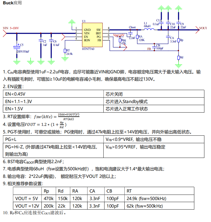 HTN77A0是一個(gè)同步降壓轉(zhuǎn)換器,具有從5V到130V的寬輸入電壓,集成了1.8?高側(cè)MOSFET和0.7?低端MOSFET。器件帶有0.84A峰值限流,可輸出持續(xù)0.7A。
