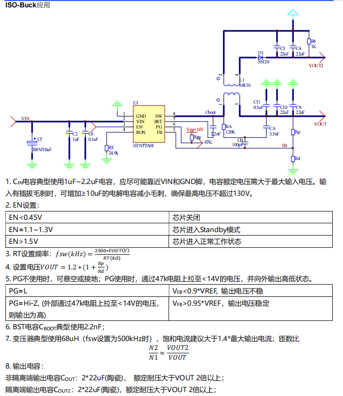 HTN77A0提供谷值電流限制、峰值電流限值、熱關(guān)斷保護(hù)和輸入電壓欠壓保護(hù)。該器件采用ESOP8封裝。