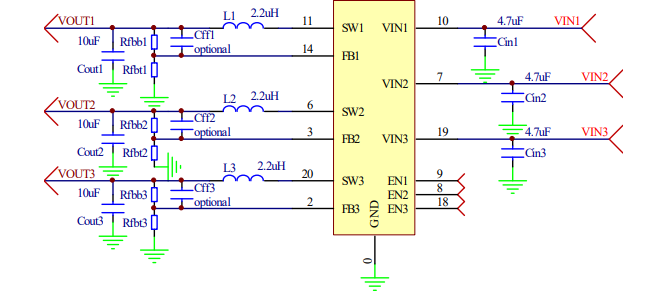 產(chǎn)品名稱:HTN1302 3通道,2.5~5.5V輸入,2A同步降壓變換器