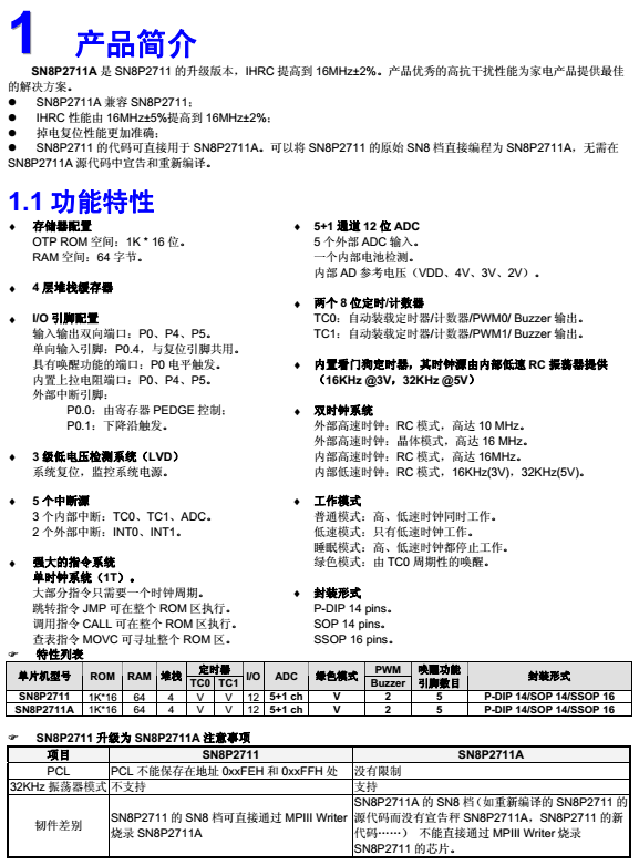 型號(hào): SN8P2711A 封裝;SOP8 SOP16 SOP14