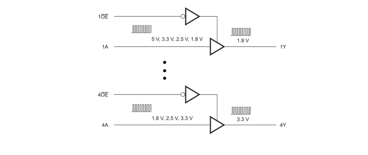 - 1.8V Vcc時,3.3V至1.8V