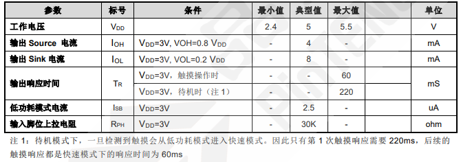 ● 可接外部電容(1~50pF)調(diào)整觸摸靈敏度