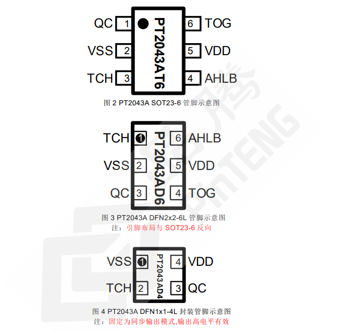 AHLB 和 TOG 選項腳位為鎖存類型:上電默認狀態(tài)為 0,若上電前管腳被接至 VDD,則上電后狀態(tài)變?yōu)?1,且不會有電流漏電。