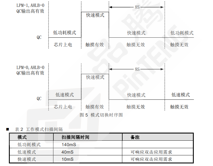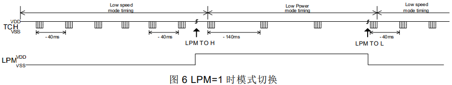 PT2051A 在低速模式下運(yùn)行,可實(shí)時(shí)響應(yīng)雙擊觸摸。在此模式下偵測(cè)到 LPM 拉高后會(huì)