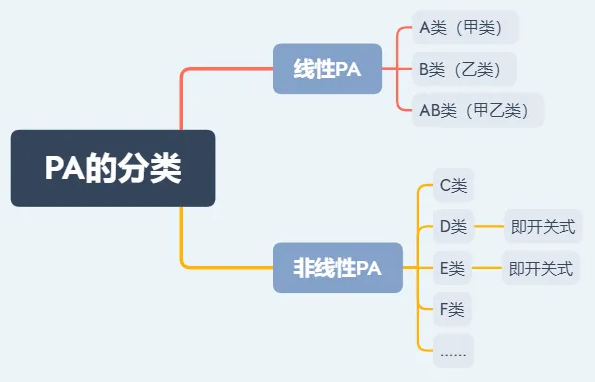 1.A類(lèi)放大器:線(xiàn)性度最高的PA,輸入信號(hào)全周期導(dǎo)通,導(dǎo)通角為360°。但是效率非常低。理想情況下為50%。實(shí)際低于30%。