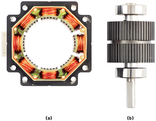 圖 1. 混合式步進(jìn)電機(jī)結(jié)構(gòu)。(a) 8 極定子。(b) 永磁體轉(zhuǎn)子。(圖片來源于ADI)1.2 工作機(jī)制當(dāng)按順序給定子線圈通電時,會產(chǎn)生磁場,該磁場與轉(zhuǎn)子的永磁體相互作用,使轉(zhuǎn)子旋轉(zhuǎn)。