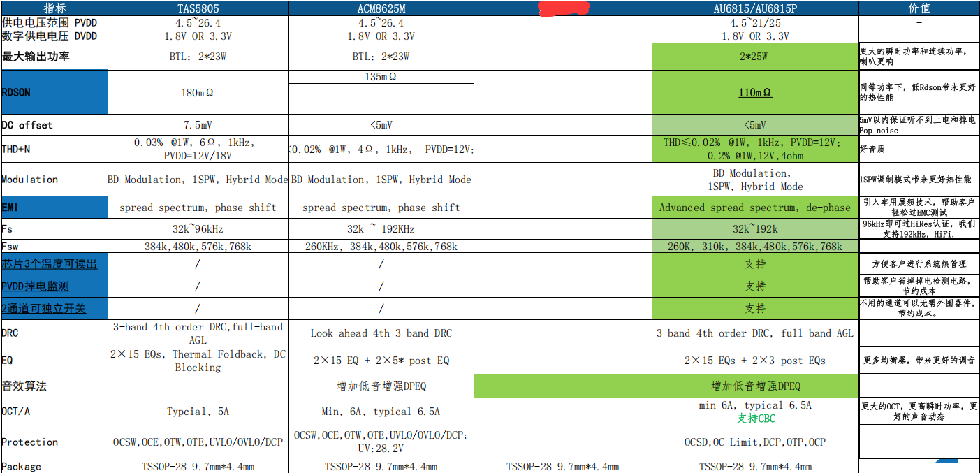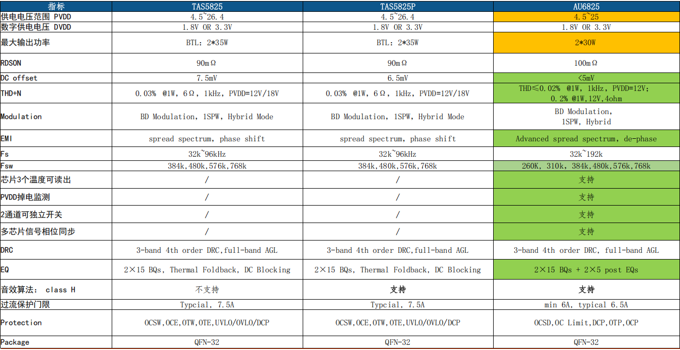 但當(dāng)前供需環(huán)境下,TI 對國際客戶的資源傾斜,讓國內(nèi)不少客戶面臨供貨難題。在此背景下,國產(chǎn)類比原廠推出兼容TAS5805\TAS5825的芯片,展現(xiàn)出顯著優(yōu)勢,其性能不打折且更貼合本土化需求: