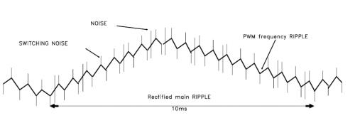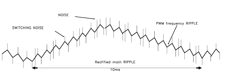 | 隨著開關(guān)頻率和開關(guān)速度不斷的提升,在使用開關(guān)型的DC/DC電源的時(shí)候,要特別關(guān)注輸入輸出電源的紋波。但是測(cè)量DC/DC電源的紋波和噪聲沒有一個(gè)行業(yè)標(biāo)準(zhǔn)。不同廠家的測(cè)試環(huán)境以及測(cè)試標(biāo)準(zhǔn)都不太一樣,導(dǎo)致很多人很迷惑。這篇文章提供了一個(gè)簡(jiǎn)單可靠的電源紋波的測(cè)試方法,這種測(cè)試方法的可復(fù)現(xiàn)性很好,并且不需要帶寬很高的示波器和探頭。 這篇文章適合用于測(cè)量開關(guān)型DC/DC轉(zhuǎn)換器的輸入以及輸出紋波,包括電荷泵,但是不適用于低壓差穩(wěn)壓器(LDO)。 紋波和噪聲Ripple and Noise 紋波和噪聲指的是在DC/DC轉(zhuǎn)換器輸入輸出電容上的交流耦合信號(hào),在測(cè)試中,一般我們會(huì)將這個(gè)信號(hào)帶寬限制到20MHz。 紋波和噪聲主要由以下四項(xiàng)組成。 --電源紋波(PWM frequency RIPPLE),和PWM頻率相同的。這個(gè)紋波表示了輸入和輸出電容上的充放電過程,在最大負(fù)載時(shí),這個(gè)紋波達(dá)到最大值。這種電壓的波動(dòng)可以通過加大輸入輸出電容、加大輸出電感來減小。 --開關(guān)噪聲(SWITCHING NOISE),這種噪聲發(fā)生在電源的開關(guān)時(shí)刻。雖然開關(guān)噪聲的重復(fù)周期和PWM頻率一致,但是振蕩頻率一般都很高。開關(guān)噪聲新的振幅一般取決于電源芯片、電路寄生參數(shù)以及PCB布板。 --工頻噪聲(Recfified main RIPPLE),一般是交流供電頻率的兩倍。我國(guó)供電頻率是50Hz,所以它的紋波主要來自工頻50Hz變壓器。大小取決于整流電路的類型。對(duì)于半波整流,50Hz;對(duì)于全波整流,是100Hz;對(duì)于三相全波整流,300Hz。 --非周期性的隨機(jī)噪聲(NOISE),和AC電源開關(guān)頻率均無(wú)關(guān)。 由于現(xiàn)在AC-DC部分大多采用模塊開關(guān)電源,后級(jí)DC/DC電路工頻噪聲比較?。浑S機(jī)噪聲無(wú)法量化。所以一般不考慮這兩項(xiàng)的影響,典型的開關(guān)電源紋波噪聲如下圖所示。我們需要測(cè)量的是紋波以及開關(guān)噪聲之和。