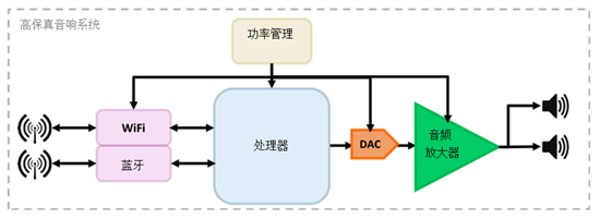為響應(yīng)客戶對(duì)頂級(jí)音頻質(zhì)量的需求,音頻系統(tǒng)設(shè)計(jì)人員正在研究高分辨率或高清(HD)音頻,因?yàn)樵絹碓蕉嗟闹卸讼到y(tǒng)買家需要以前只能在高端系統(tǒng)中使用的高清音頻性能的類型。過去,44.1kHzCD品質(zhì)采樣頻率對(duì)于大部分市場(chǎng)來說已足夠,但是今天(和可以預(yù)見的將來),高保真聲音的需求只會(huì)繼續(xù)增長(zhǎng)。 根據(jù)專業(yè)和消費(fèi)類音頻設(shè)備公司,更高的采樣頻率捕獲并再現(xiàn)更廣泛的頻率范圍。大于20kHz音頻頻率的再現(xiàn),包括超高頻諧波,給出了聲音(特別是聲學(xué)樂器)的微妙組成部分的特性。據(jù)這些音頻設(shè)備公司介紹,有一些技術(shù)優(yōu)點(diǎn)使其值得轉(zhuǎn)向更高的采樣頻率,例如由于在數(shù)模轉(zhuǎn)換或模數(shù)轉(zhuǎn)換期間采用的陡峭濾波器來減少不必要的副作用。 簡(jiǎn)單地選擇一個(gè)現(xiàn)成的音樂播放器將不會(huì)兌現(xiàn)高分辨率音頻的承諾,這需要專門的硬件來真正享受其豐富內(nèi)涵和微妙之處。當(dāng)然,并非每個(gè)音頻文件或媒體都被錄制在高清音頻中。 設(shè)計(jì)高清音頻系統(tǒng) 與每個(gè)高性能設(shè)計(jì)一樣,采用全系統(tǒng)的方式處理整個(gè)音頻信號(hào)鏈,確保了強(qiáng)大和高性能的解決方案。因?yàn)橐纛l信號(hào)鏈中的每一個(gè)環(huán)節(jié)都很重要,確保它沒有最弱的環(huán)節(jié),每個(gè)環(huán)節(jié)必須能夠滿足所有設(shè)計(jì)目標(biāo)規(guī)格,如性能、成本、上市時(shí)間和易用性。圖1所示為HD系統(tǒng)中的基礎(chǔ)。 圖1:高清音頻系統(tǒng)