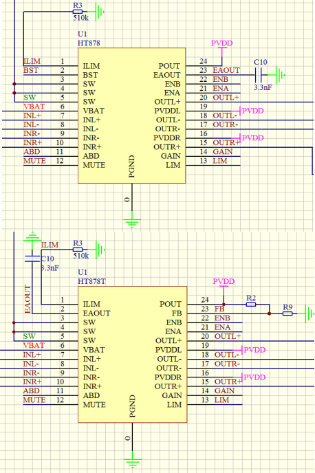 HT878 和 HT878T 管腳 2 和 23 有區(qū)別。