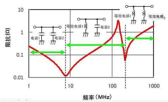 a.電容具有引腳電感,當(dāng)頻率高到一定的值后會使得電容的阻抗增加;