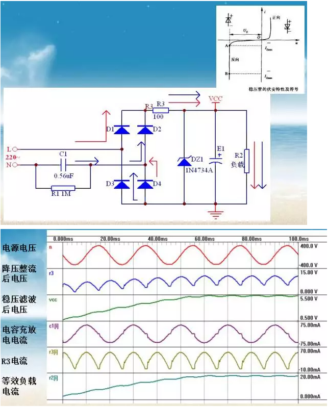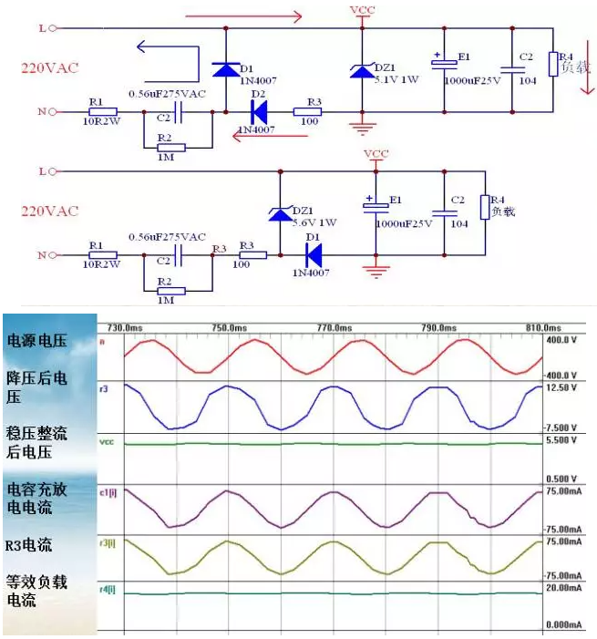 阻容降壓是一種利用電容在一定頻率的交流信號下產(chǎn)生的容抗來限制最大工作電流的電路。