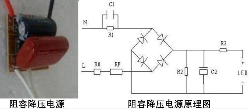 采用一個電容通過其充放電來提供驅動電流,電路簡單,成本低,但性能差,穩(wěn)定性差,在電網電壓波動時極容易燒壞LED,同時輸出高壓非隔離,要求絕緣防護外殼。功率因數低,壽命短,一般只適于經濟型小功率產品(5W以內)。