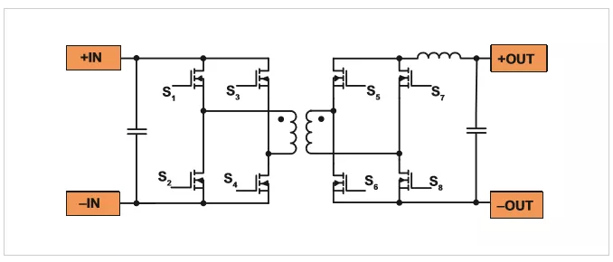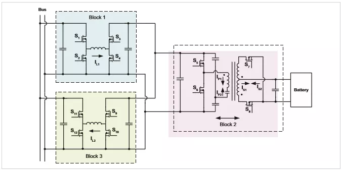 該配置的優(yōu)勢在于可在雙向工作獲取高效率和高功率密度時,特別是這種母線電池接口應(yīng)用。