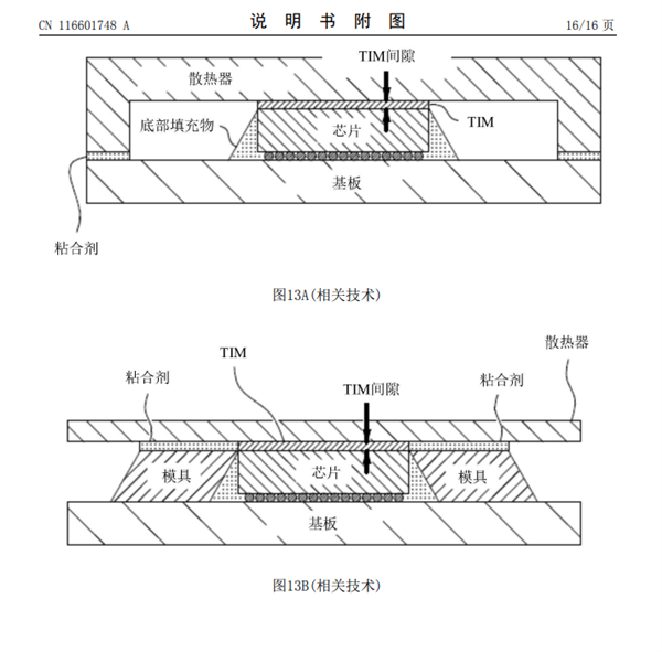 據(jù)了解,該專利實(shí)施例提供了一種倒裝芯片封裝、一種裝備有應(yīng)用封裝結(jié)構(gòu)的電路的裝置以及一種組裝封裝的方法,更直觀來說,就是一種提供芯片與散熱器之間的接觸方式,能幫助改善散熱性能。