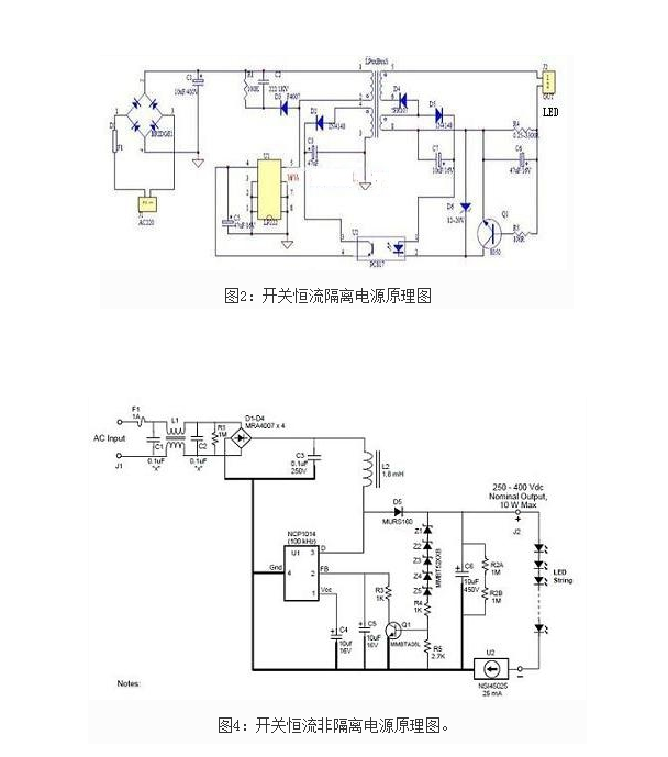 采用變壓器將高壓變?yōu)榈蛪海⑦M行整流濾波,以便輸出穩(wěn)定的低壓直流電。開關恒流源又分隔離式電源和非隔離式電源,隔離是指輸出高低電壓隔離,安全性非常高,所以對外殼絕緣性要求不高。非隔離安全性稍差,但成本也相對低,傳統(tǒng)節(jié)能燈就是采用非隔離電源,采用絕緣塑料外殼防護。開關電源的安全性相對較高(一般是輸出低壓),性能穩(wěn)定,缺點是電路復雜、價格較高。開關電源技術成熟,性能穩(wěn)定,是目前LED照明的主流電源,