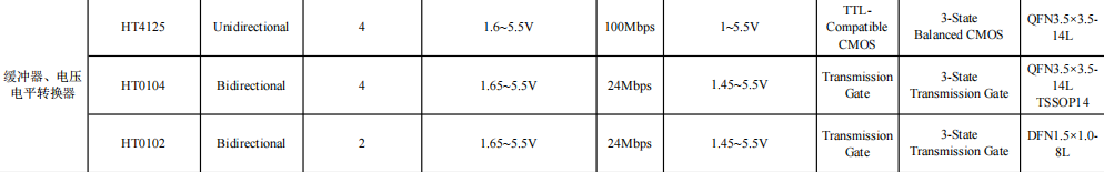 HT0104兼容 MS4554、SGM4564、AiPTXS0104。HT4125兼容SN74LV4T125 HT0102兼容TXS0102/TXB0102