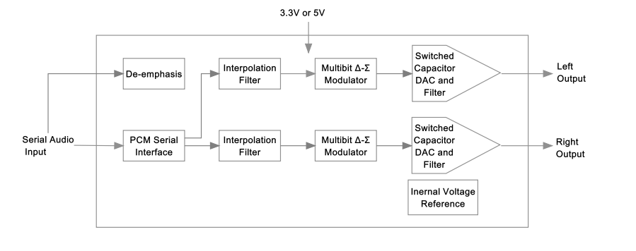 對(duì)于各種應(yīng)用,HT5943設(shè)備支持主從模式以及串行音頻接口的各種格式,如I2S、左對(duì)齊、DSP/PCM和TDM。