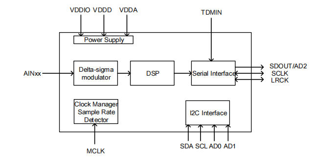 • 差分電壓輸入:±VDDA/3.3Vrms