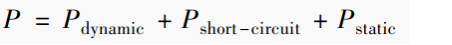 式中,Pdynamic是邏輯單元輸出轉換時的動態(tài)功耗;Pshort-circuit是與短路電流相關的短路功耗,短路電流又稱為射穿電流;Pstatic 是器件由于漏電流產生的靜態(tài)功耗。