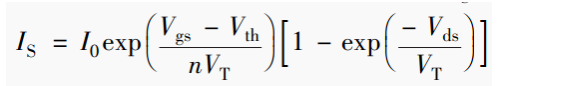 式中,VT是熱電壓;Vds是漏源電壓;n和I0是與器件相關的常數(shù)。隨著Vth減少,電流 IS增加。同時隨著通道長度與氧化層厚度增加,閾值電壓會減小。