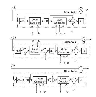 一般DRC包含分頻,擴(kuò)位,峰值/均值檢測(cè),啟動(dòng)和釋放平滑增益控制等,常見(jiàn)動(dòng)態(tài)范圍壓縮的框圖如下。