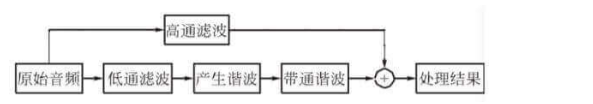 心理聲學(xué)實(shí)驗(yàn)中,存在一種“虛擬音調(diào)”的實(shí)驗(yàn)現(xiàn)象:人耳在基頻缺失的情況下利用諧波組合重建信號(hào)音調(diào)高低。主要流程如下圖,產(chǎn)生諧波主要方法為MaxxBass算法和VB Phase Vocoder。