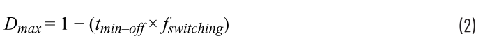 某些應用可能需要較小的降壓比,這可能會違反轉換器的最小關斷時間規(guī)范。tmin-off是tmin-on的補充,定義為電感未由輸入源充電的最短時間。與導通時間要求類似,SMPS必須關斷規(guī)定的時間以確保FET正常運行(允許正常放電)。當要求的占空比大于允許的最大占空比(由式2給出)時,就會違反最小關斷時間規(guī)范。