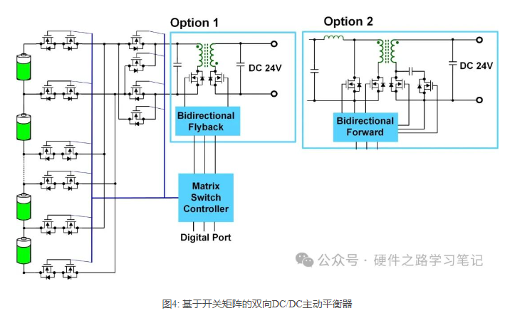 ②開關(guān)矩陣+變壓器主動(dòng)平衡器