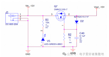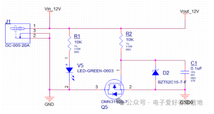 當(dāng)電源電壓接反時(shí),LED滅,表示輸入正常反接了。NMOS不導(dǎo)通,MOS管截止。從而保護(hù)后級(jí)電路的安全,R2和D2是為了確保電源接入正確時(shí),更好的保證MOS管導(dǎo)通,穩(wěn)壓二極管D2作用是為了保護(hù)由于輸入電壓過高導(dǎo)致超過MOS管的Vgs最大值避免MOS管損壞。