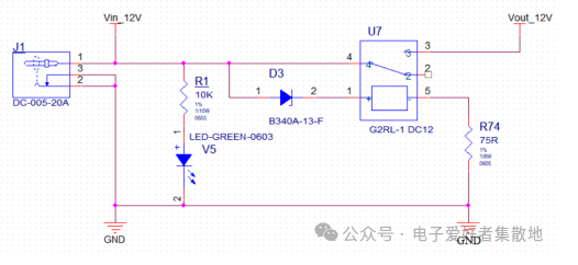 電源正接時(shí),繼電器線圈通電,繼電器吸合,電源導(dǎo)通。電源反接時(shí),二極管截止,繼電器線圈不通電,繼電器不吸合,電源斷開。
