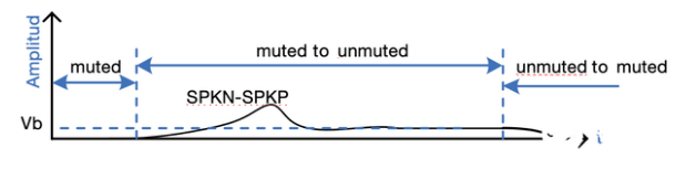 SPKP 和 SPKN 是低通濾波器后的電壓水平。由于 A 點(diǎn)的輸出脈沖與 B 點(diǎn)的輸出脈沖不匹配,SPKP 將不 等于 SPKN,這會(huì)在揚(yáng)聲器端子之間產(chǎn)生容差電壓,并 驅(qū)動(dòng)電流流入線(xiàn)圈,從而產(chǎn)生點(diǎn)擊聲或爆裂聲。偏置電 壓幅度在環(huán)路穩(wěn)定后將保持一定值,我們稱(chēng)這個(gè)偏移值 為功率放大器的直流偏置電壓,‘SPKN-SPKP’的波 形顯示了詳細(xì)結(jié)果。直流偏置電壓會(huì)在揚(yáng)聲器上造成功 率損耗,當(dāng)功率放大器靜音時(shí)也會(huì)產(chǎn)生點(diǎn)擊聲或爆裂聲, 因?yàn)閾P(yáng)聲器端子之間的偏置電壓在從取消靜音到靜音時(shí) 會(huì)從直流偏置電壓變?yōu)?0 ,這種過(guò)渡會(huì)使電流流入揚(yáng)聲 器線(xiàn)圈,較大的直流偏置電壓在靜音時(shí)會(huì)導(dǎo)致更大的POP噪聲。圖 4 總結(jié)了揚(yáng)聲器在不同播放控制階段的偏置 電壓。Vb 是稱(chēng)為直流偏置電壓的偏移電壓。