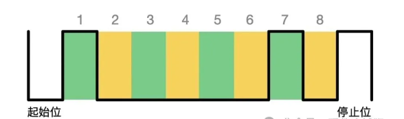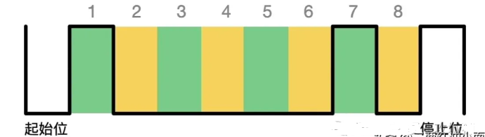 中間的8位(一個(gè)字節(jié))采用ASCll碼表來傳輸數(shù)據(jù)