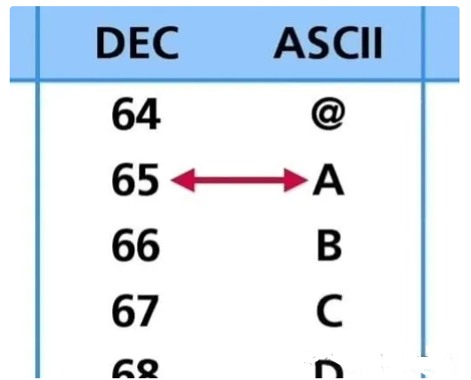 在ASCll碼表中,字母 A 對(duì)應(yīng)的十進(jìn)制為65