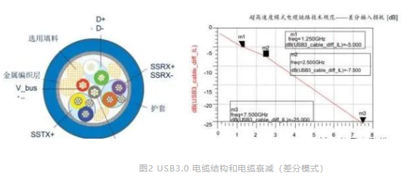 整個收發(fā)區(qū)具備 90 歐姆差分阻抗??紤]了發(fā)送端和接收端的寄生效應。測得數(shù)據(jù)表明了 USB3.0 電纜的狀態(tài)。規(guī)定 USB3.0 電纜的最大長度為 3 米。