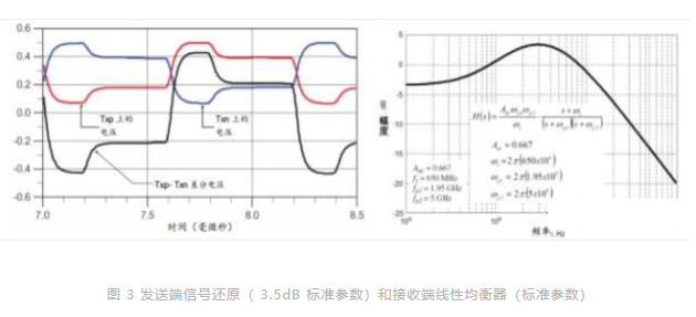 在擁有無限帶寬的完美系統(tǒng)中,眼圖完全張開。而在實際的系統(tǒng)中,發(fā)送和接收阻抗(90歐姆差分阻抗)以及發(fā)送端和接收端的所有寄生電容,限制了信號的上升時間/下降時間。這些寄生電容存在于USB3.0收發(fā)器內部,和/或PCB外部。不匹配的PCB線路、USB3.0連接器或其他并聯(lián)電容器等,均會造成外部寄生電容。因此,這些額外的并聯(lián)電容器必須盡可能小。還必須考慮到USB3.0電纜的低通頻率響應(請參閱圖2)。為了抵消高頻信號的衰減,可在發(fā)送端和接收端利用專用均衡器來調整信號。