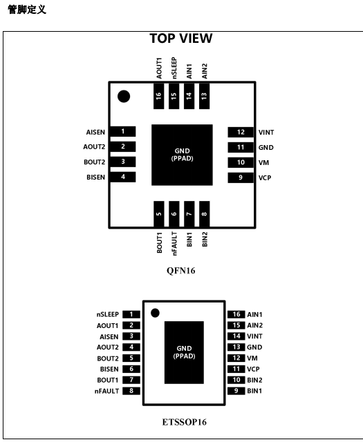 HR8833為玩具、打印機和其它電機一體化應用提供一種雙通道電機驅動方案。HR8833有兩路H橋驅動,可以驅動兩路刷式 直流電機,或者一個雙極步進電機,或者螺線管或者其它感性負載。每一個橋的功率輸出模塊由N通道功率MOSFET組成,叫作H 橋驅動器。每個橋包含整流電路和限流電路。 內(nèi)部關斷功能包含過流保護,短路保護,欠壓鎖定保護和過溫保護,并提供一個故障輸出管腳。HR8833提供兩種封裝,一種是帶有裸露焊盤的ETSSOP16封裝,另一種是帶裸焊盤的QFN16封裝,能有效改善散熱性能,且是無鉛產(chǎn)品,符合環(huán)保要求