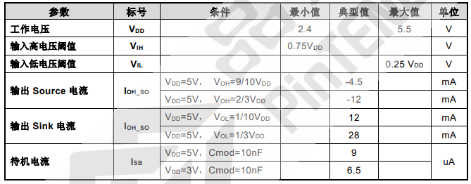 ● 待機(jī)電流約 9uA@VDD=5V/CMOD=10nF