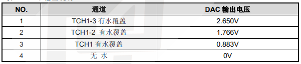 ● 當(dāng)液面覆蓋檢測(cè)盤(pán),檢測(cè)到 TCH 腳電容值大于 CREF 基準(zhǔn)電容值時(shí),DAC 輸出對(duì)應(yīng)