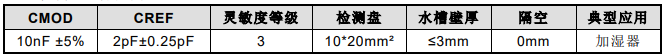 ● 水位檢測(cè)應(yīng)用時(shí),CREF 腳接 2PF 左右的基準(zhǔn)電容,TCH 腳接水位檢測(cè)盤(pán)。