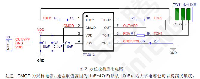 產(chǎn)品名稱(chēng): PT2013 3 通道電容式水位檢測(cè)IC