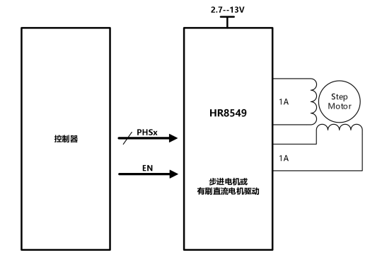 和其它電機一體化應(yīng)用提供一種雙通道電機驅(qū)動方案。HR8549 內(nèi)置兩路 H 橋驅(qū)