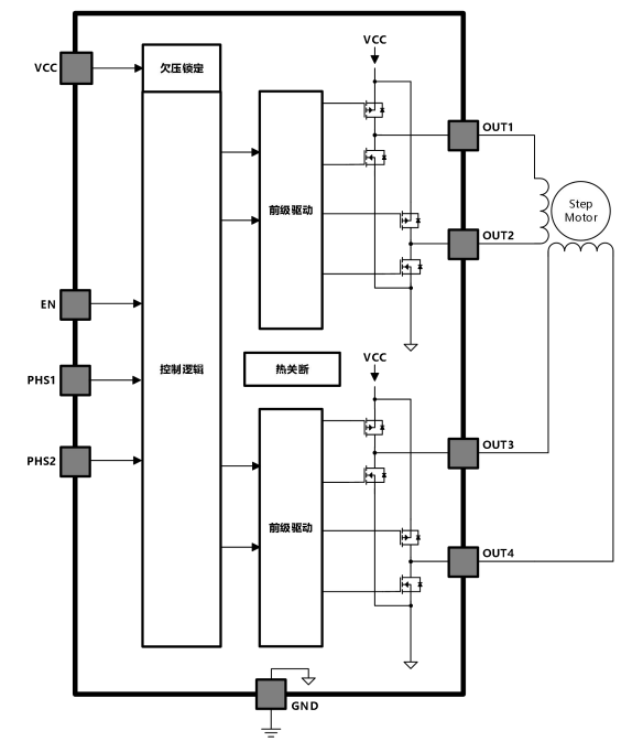 ● 驅(qū)動兩個直流有刷電機或者一個步進電機