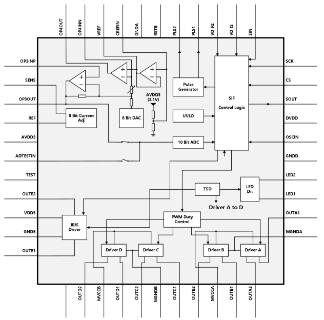 ● PWM調(diào)制實現(xiàn)低功耗光圈驅(qū)動