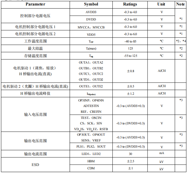 *3:(DVDD+0.3)不得超過 4.0V,(AVDD+0.3)不得超過 4.0V