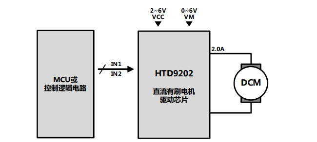 HTD9202具有一個(gè)PWM (IN1/IN2)輸入接口。