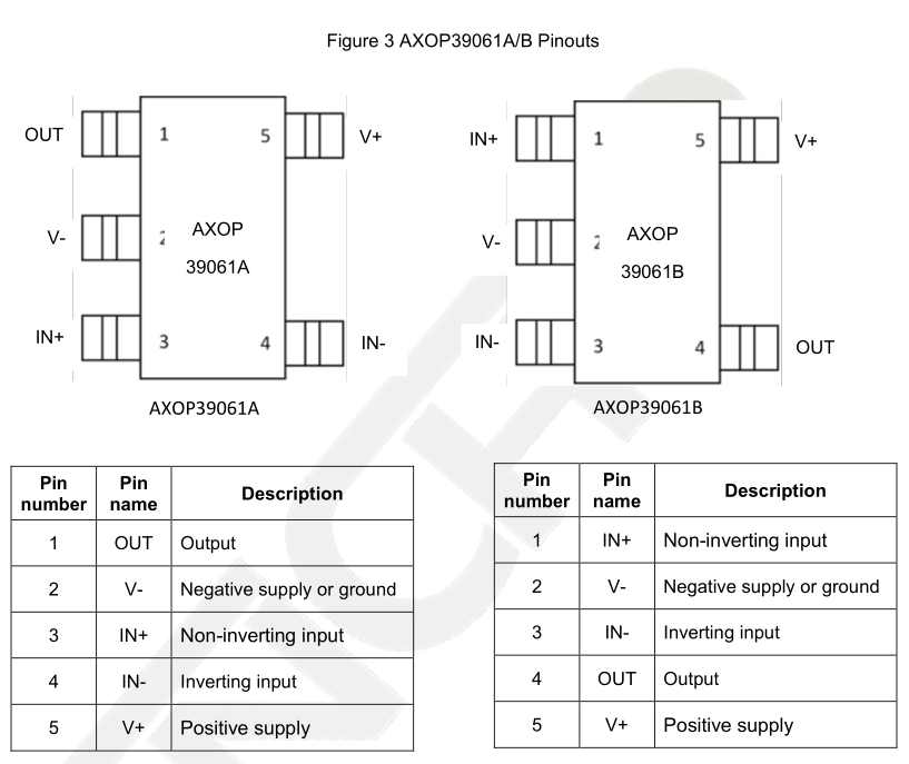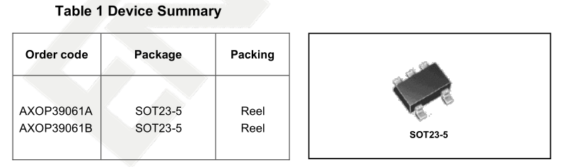 The AXOP39061 device is a low power, rail-to-rail input and output opamp. The deviceoperates from
