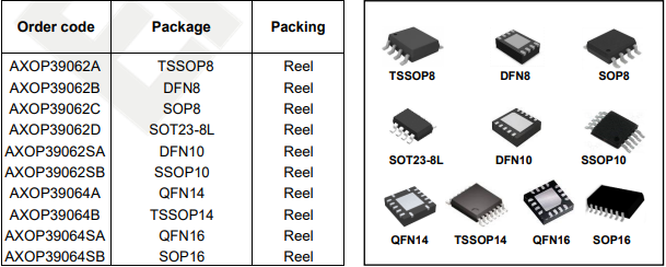 and high capacitive load drive are required. AXOP39062S and AXOP39064S are with Shutdown function.