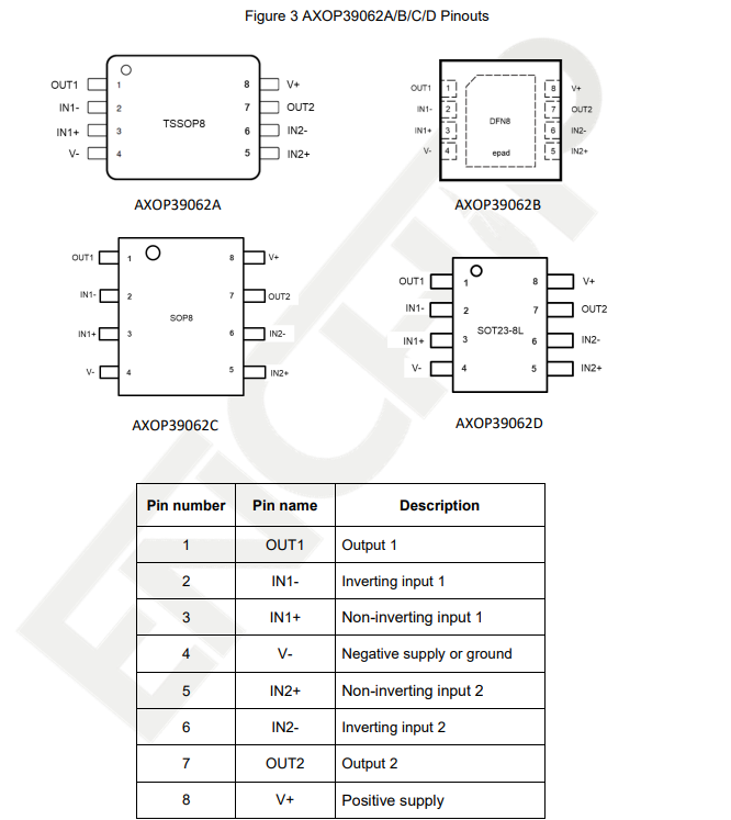 The AXOP3906x devices are a family of low power, rail-to-rail input and output opamps. These