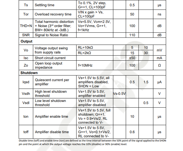 full rail-to-rail output swing capability. For resistive loads of 10kΩ, the output swings to within